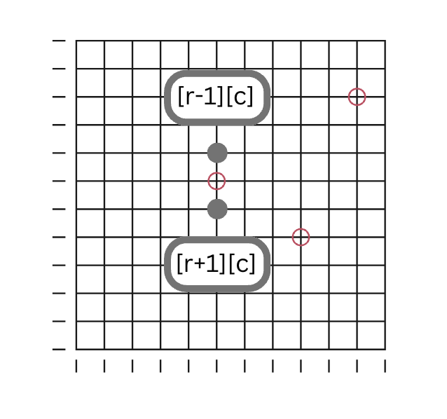 [5][5] 를 위로 한 칸 올리면[4][5], 즉 행(앞이) -1 된 것이라고 이해하면 좋다.