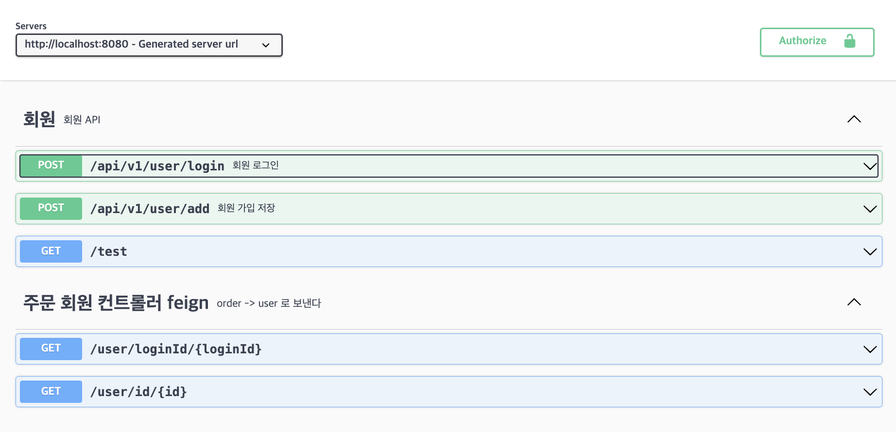 +) 로그인 처리 : 80 포트에서 user 정보 받음 -> feign client 요청으로 82 포트에 보내기