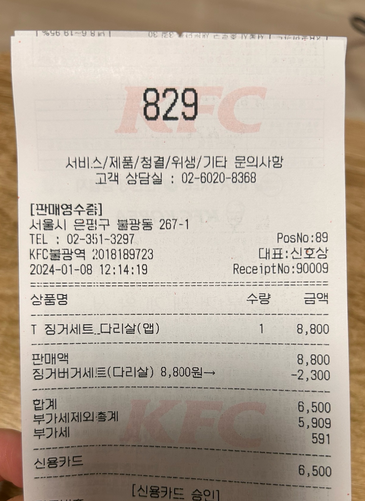 2024.01.08. KFC 징거버거 세트
