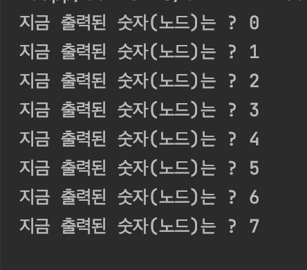System.out.println("지금 출력된 숫자(노드)는 ? " + node);